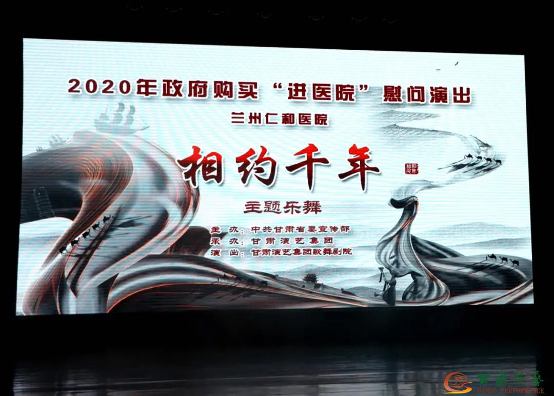 2020年11月24日,由中共甘肅省委宣傳部主辦,甘肅演藝集團(tuán)承辦,甘肅演藝集團(tuán)歌舞劇院精心呈現(xiàn)的2020年政府購買慰問醫(yī)務(wù)工作者主題樂舞《相約千年》在甘肅演藝集團(tuán)歌舞劇院花雨劇場精彩上演,演員們帶著最深的敬意,用兩場暖心演出分別致敬蘭州市城關(guān)區(qū)婦幼保健院和蘭州仁和醫(yī)院的白衣天使,通過文藝形式表達(dá)對最美逆行者的贊揚(yáng)和歌頌。
