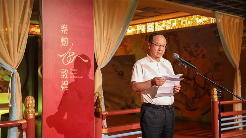 甘肅演藝集團(tuán)近年來積極響應(yīng)國(guó)家“一帶一路”倡議,廣泛開展國(guó)內(nèi)外文化交流,創(chuàng)排演出了一大批展示中國(guó)優(yōu)秀傳統(tǒng)文化和甘肅文化特色的優(yōu)秀作品,充分發(fā)揮文化交流主力軍作用,致力于通過“講好中國(guó)故事,傳播好中國(guó)聲音”,將中華民族優(yōu)秀文化推得更廣走得更遠(yuǎn),擴(kuò)大朋友圈,畫出更大同心圓。為弘揚(yáng)中華優(yōu)秀傳統(tǒng)文化,推動(dòng)敦煌文化發(fā)揚(yáng)光大,打造了大型文旅產(chǎn)業(yè)綜合體項(xiàng)目樂動(dòng)敦煌。甘肅省國(guó)際文化交流中心文化交流基地落地樂動(dòng)敦煌—文旅產(chǎn)業(yè)綜合體,將依托活化的敦煌古樂器、古樂譜研發(fā)成果,堅(jiān)持讓敦煌文化走出去、研學(xué)培訓(xùn)引進(jìn)來,不斷加大宣傳推介敦煌文化的力度,開展敦煌文化推介和招培招學(xué)活動(dòng),吸引國(guó)內(nèi)外研學(xué)團(tuán)隊(duì)赴樂動(dòng)敦煌開展研學(xué),推動(dòng)文旅融合和研學(xué)新業(yè)態(tài)發(fā)展,為甘肅旅游經(jīng)濟(jì)發(fā)展和文化交流起到引領(lǐng)帶動(dòng)作用?;顒?dòng)現(xiàn)場(chǎng),還舉行了“甘肅非遺文創(chuàng)產(chǎn)品展銷基地”與“甘肅省國(guó)際文化交流中心文化交流基地”揭牌儀式。