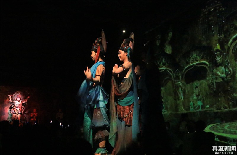 5月25日晚,演員在全球首部洞窟式沉浸體驗劇《樂動敦煌》中表演。