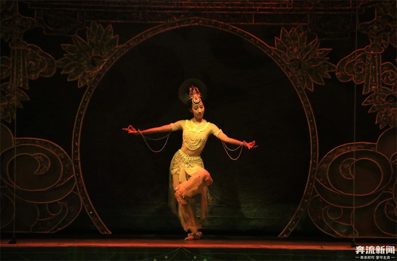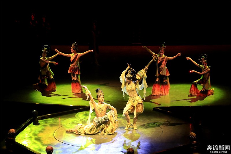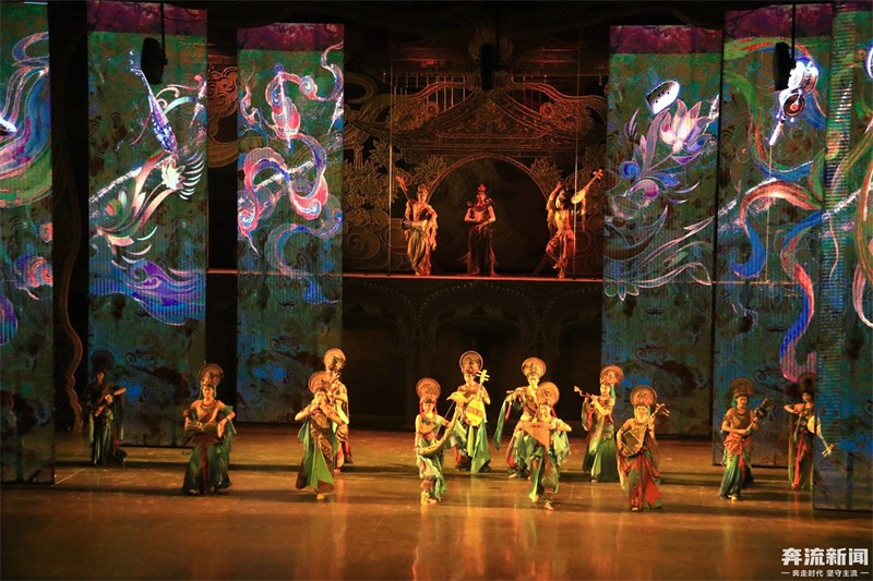 《樂動敦煌》是由中宣部支持,甘肅省委宣傳部策劃,甘肅演藝集團總監(jiān)制、出品的全球首部洞窟式沉浸體驗劇。作品溯源敦煌文化,借助對莫高窟壁畫、藏經洞古籍的深度解讀梳理,活化敦煌古樂器、古樂譜研發(fā)成果,采用全息投影、3D威亞等高科技手段,以全沉浸式的呈現(xiàn)方式,演繹了西域少年白氏追尋藝術的動人故事。
