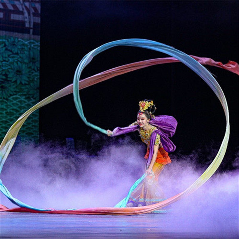 此舞只應(yīng)天上有,人間難得看幾回。舞劇《絲路花雨》是甘肅省歌舞劇院以舉世聞名的敦煌壁畫和絲綢之路為題材,以和平、友誼為主題,通過敦煌畫工“神筆張”和女兒“英娘”與波斯商人“依努斯”患難與共、生死相交的故事,以別具一格的藝術(shù)風(fēng)格,將瑰麗多彩的敦煌壁畫搬上舞臺,藝術(shù)再現(xiàn)了敦煌文化的博大精深,贊美了勞動人民創(chuàng)造敦煌文化的光輝形象,歌頌了古絲綢之路中外各族人民友好往來、民心相通的動人故事。舞劇《絲路花雨》博采“一帶一路”沿線國家和地區(qū)民間歌舞,融合了中國古典舞、印度舞、黑巾舞、波斯馬鈴舞、波斯酒舞、土耳其舞、盤上舞、新疆舞等舞蹈藝術(shù)形式。