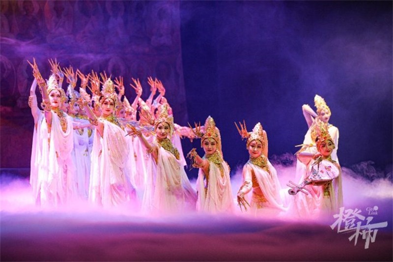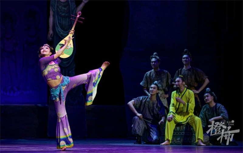 在絲路漫漫、駝鈴陣陣的音樂聲中,來自甘肅省歌舞劇院的藝術(shù)家們,讓現(xiàn)場觀眾走進(jìn)古絲綢之路的歷史畫卷中,大氣唯美的布景、絢麗多彩的舞蹈、極富張力的演繹、跌宕起伏的情節(jié),這場載入中華民族藝術(shù)史冊的經(jīng)典舞劇,在蝴蝶劇場展開了一幕幕瑰麗多彩的古絲路場景,令現(xiàn)場觀眾們深深沉醉其中,如癡如醉。從敦煌彩塑和壁畫中提煉出的飛天、反彈琵琶等曼妙舞姿,在舞臺上一一呈現(xiàn)。掌聲一次次響起,“太美了”“太震撼了”的贊嘆在劇場各個位置一次次重復(fù)著。恢宏盛大的莫高窟,氣象萬千的敦煌藝術(shù),更是讓現(xiàn)場觀眾對絲綢之路和敦煌心生向往。