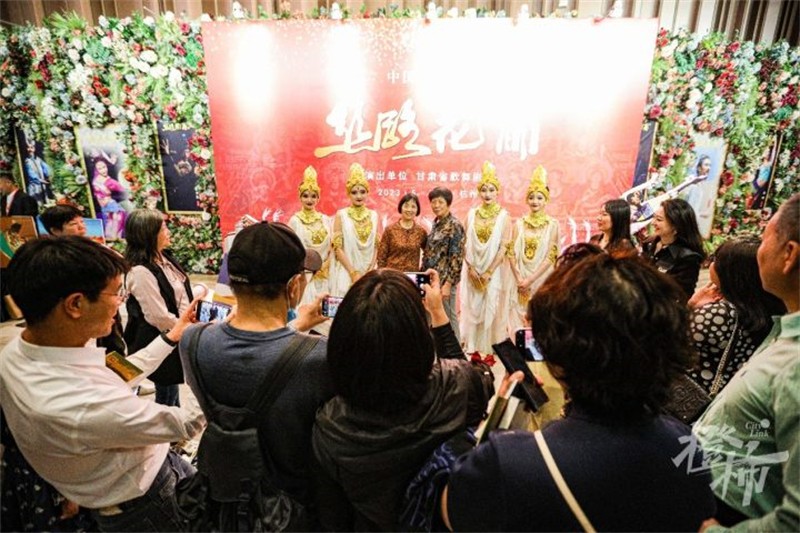 絲路花雨舞動人間天堂,如意甘肅閃耀之江大地。5月14日晚,在杭州西湖之畔的蝴蝶劇場,由甘肅省文化和旅游廳主辦,甘肅演藝集團(tuán)承辦,甘肅省歌舞劇院演出的經(jīng)典舞劇《絲路花雨》文化交流演出精彩上演。劇場內(nèi)曼妙的舞姿,悠揚(yáng)的鼓樂,動人的故事,讓古老的敦煌文化印入人心;劇場外精美的圖片,別致的陳列,熱情的宣傳,全面展示隴原大地的多彩畫卷。