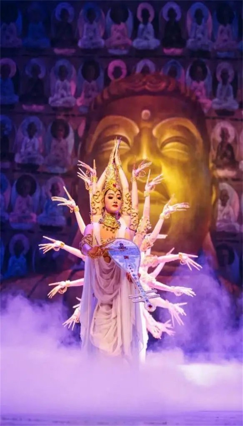 此次演出,觀眾將有幸欣賞到久負盛名的“千手觀音”“反彈琵琶”“飛天”等著名舞蹈畫面,通過舞蹈語言、音樂和創(chuàng)新的舞臺設計,感受古絲綢之路上不同文化交織的輝煌和獨特魅力。整場劇目融入了霓裳羽衣舞、印度舞、黑巾舞、波斯馬鈴舞、波斯酒舞、土耳其舞、盤上舞、新疆舞等多種舞蹈風格,賦予了舞劇豐富的藝術層次感和文化內涵,完美再現(xiàn)古絲綢之路上各民族頻繁交流的景象,講述了不同文化背景下人們的情感與命運的故事。一幅幅流動的敦煌勝景,將會讓現(xiàn)場觀眾“穿越”回駝鈴聲聲的絲綢之路。