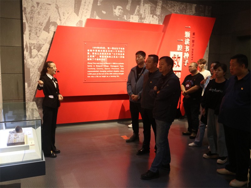 隨后,全體黨員在講解員的引導(dǎo)下參觀張一悟紀(jì)念館。展館共分“張一悟生平事跡展”和“榆中革命斗爭史展”9個部分15個單元。大家神情專注,認(rèn)真觀看一件件歷史實物、一頁頁文獻(xiàn)資料、一張張歷史照片,走近了隴上革命先驅(qū)張一悟、金自山、丁益三、陳成義等一個個閃光的名字,也走近了與之緊密相關(guān)的中國共產(chǎn)黨金崖支部、城關(guān)支部、榆中縣委等可歌可泣的奮斗故事,翻開了中國共產(chǎn)黨甘肅歷史中最為輝煌壯麗的篇章。一盞油燈、一本黨史、一副眼鏡,在張一悟紀(jì)念館尾廳擺放著的這三件革命文物生動體現(xiàn)著張一悟同志如巍巍興隆山下永恒的明燈一般的革命精神。