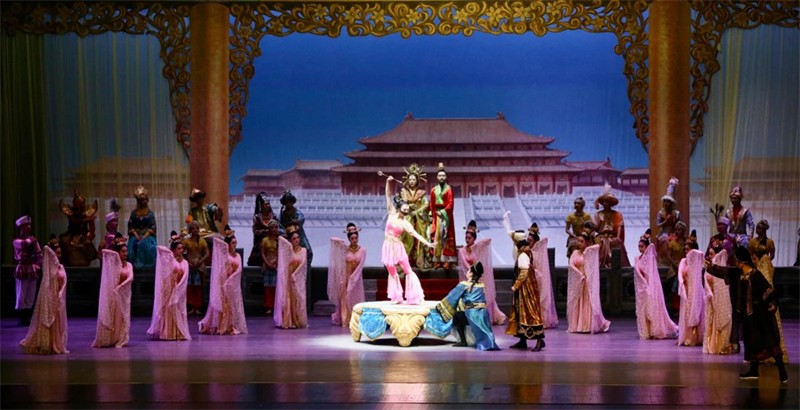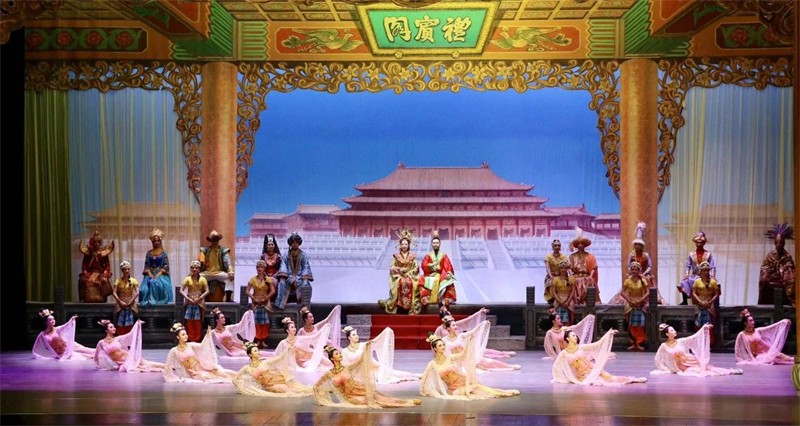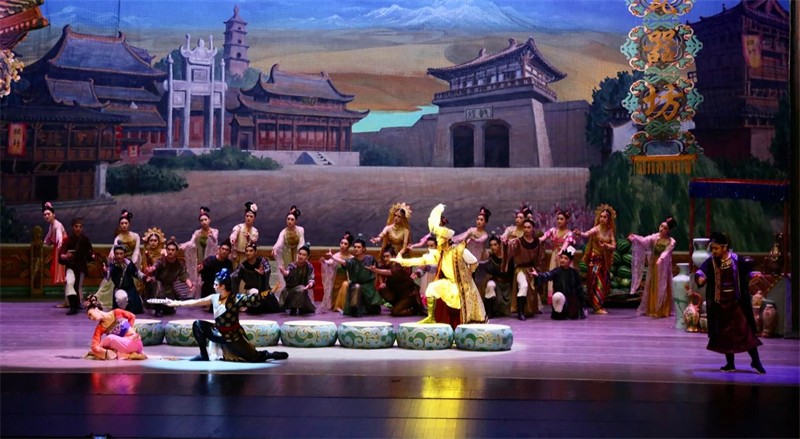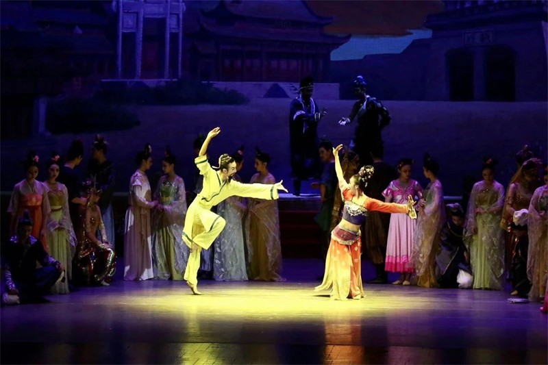“活的敦煌壁畫,美的藝術享受”,舞劇《絲路花雨》是甘肅演藝集團歌舞劇院以舉世聞名的敦煌壁畫和絲綢之路為題材,以和平、友誼為主題,通過敦煌畫工神筆張和女兒英娘與波斯商人患難與共、生死相交的故事,以別具一格的藝術風格,將瑰麗多彩的敦煌壁畫搬上舞臺,融合了中國古典舞、印度舞、黑巾舞、波斯馬鈴舞、波斯酒舞、土耳其舞、盤上舞、新疆舞等各種藝術形式于一劇,形象地再現(xiàn)了敦煌文化的博大精深,歌頌了勞動人民創(chuàng)造敦煌文化的光輝藝術形象,贊美了古絲綢之路中外各族人民友好往來、民心相通的動人故事。