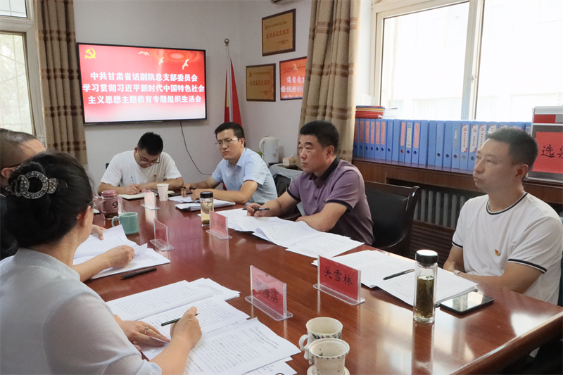 根據(jù)集團(tuán)黨委學(xué)習(xí)貫徹習(xí)近平新時代中國特色社會主義思想主題教育領(lǐng)導(dǎo)小組安排部署,8月31日下午,甘肅演藝集團(tuán)話劇院(甘肅兒童劇院)黨總支組織召開主題教育專題組織生活會。集團(tuán)黨委委員、副總經(jīng)理、財務(wù)總監(jiān)張國偉及督導(dǎo)組一行到會指導(dǎo)。話劇院領(lǐng)導(dǎo)班子成員及各部門負(fù)責(zé)人、黨員參加會議,會議由黨總支書記、院長張沛主持。