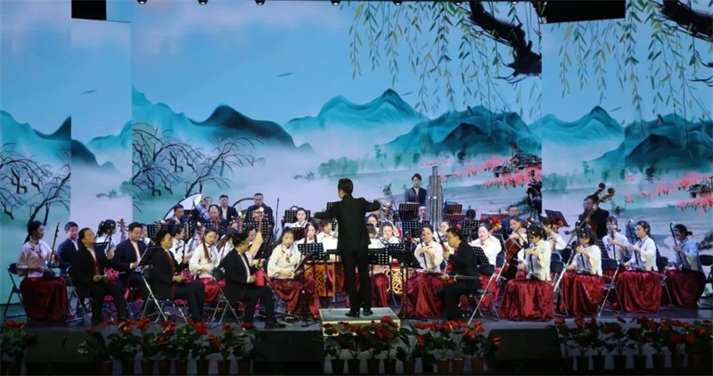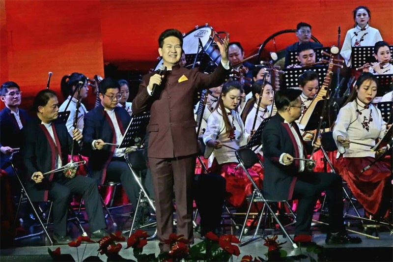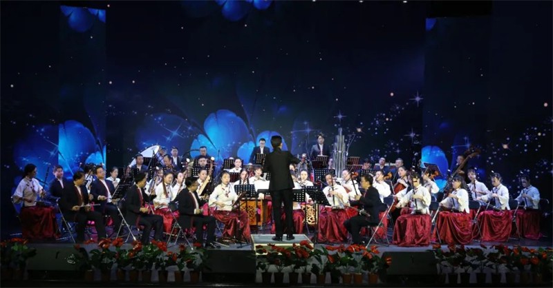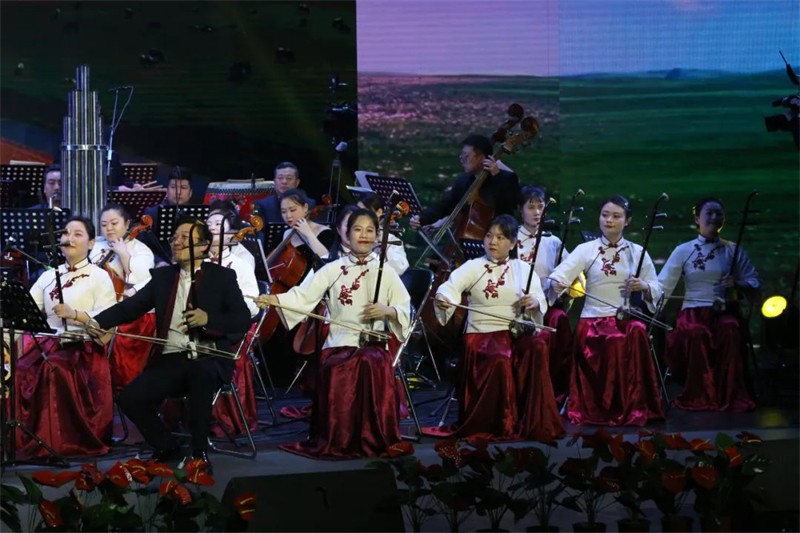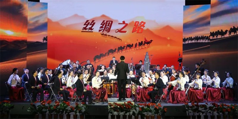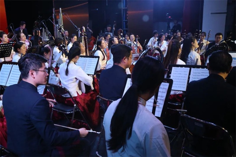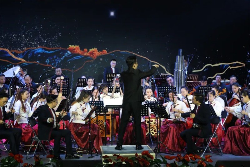 為了提升民族交響盛宴的觀賞性和藝術性,本場演出采用現(xiàn)代手法演繹民族經(jīng)典音樂作品,涵蓋民族管弦樂《慶典序曲》《花兒主題隨想》《七彩之和》《風之歌》《春華秋實》《歡樂歌》《金蛇狂舞》《絲綢之路》、女聲二重唱《節(jié)日歡歌》、男聲獨唱《草原上升起不落的太陽》、女聲獨唱《蘆花》及二胡齊奏《新賽馬》等,用現(xiàn)代音樂元素展示民族音樂的無限魅力。這一晚美麗的“銅城”白銀,不僅有九曲黃河與絲綢之路交匯融合,還有歡聲笑語和動人音符交織飛揚,更有滿懷祝福與美好期冀交融共存!