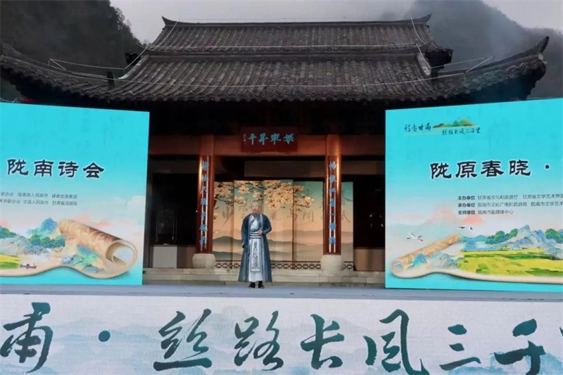 詩歌是甘肅深厚歷史文化中的一顆耀眼明珠。自《詩經(jīng)》始,悠久的詩歌傳統(tǒng)貫穿了甘肅歷史文化發(fā)展的全過程。古往今來,眾多詩人行吟甘肅大地,大量詩篇歌詠甘肅風(fēng)物,為甘肅的歷史文化注入了靈性和靈魂。整場活動以《漢書》中關(guān)于“孟春之月,群居者將散,行人振木鐸徇于路,以采詩”的記載為引子,以情景朗誦、古風(fēng)舞蹈、現(xiàn)代詩吟誦、當(dāng)?shù)馗栉枵故竞腕艋鹜頃刃问?,將詩書樂舞與茶藝等表演相結(jié)合,通過線上線下同步的方式向廣大觀眾展示充滿詩意和茶香的隴上江南獨(dú)特魅力。