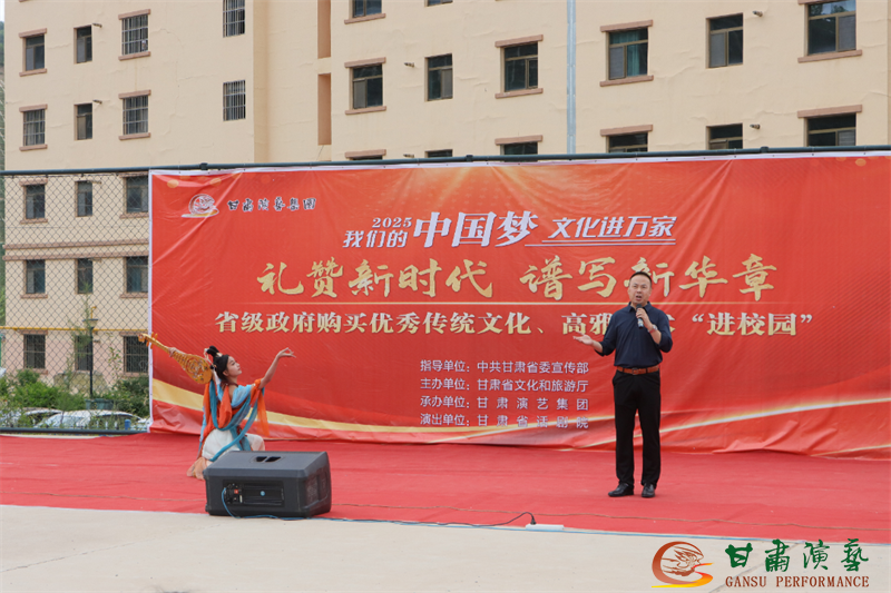 除了在各地廣場和鄉(xiāng)村進(jìn)行演出外,6月19日上午,演出隊(duì)還趕赴康樂縣胭脂湖百姓大舞臺開展“禮贊新時(shí)代?譜寫新華章”2025我們的中國夢文化進(jìn)萬家省級政府購買優(yōu)秀傳統(tǒng)文化,高雅藝術(shù)“進(jìn)企業(yè)”演出,為企業(yè)職工送去了豐富的精神食糧,豐富了他們的文化生活,激勵(lì)大家以更加飽滿的熱情投入到工作中。下午,演出隊(duì)馬不停蹄地來到東鄉(xiāng)縣實(shí)驗(yàn)小學(xué)開展“進(jìn)校園”演出,為師生們帶來了一場別開生面的藝術(shù)體驗(yàn)。學(xué)生們被精彩的節(jié)目深深吸引,現(xiàn)場氣氛熱烈而歡快,演出不僅豐富了校園文化生活,也讓孩子們近距離感受到了藝術(shù)的魅力,激發(fā)了他們對藝術(shù)的熱愛和追求,為校園文化建設(shè)增添了一抹亮麗的色彩。