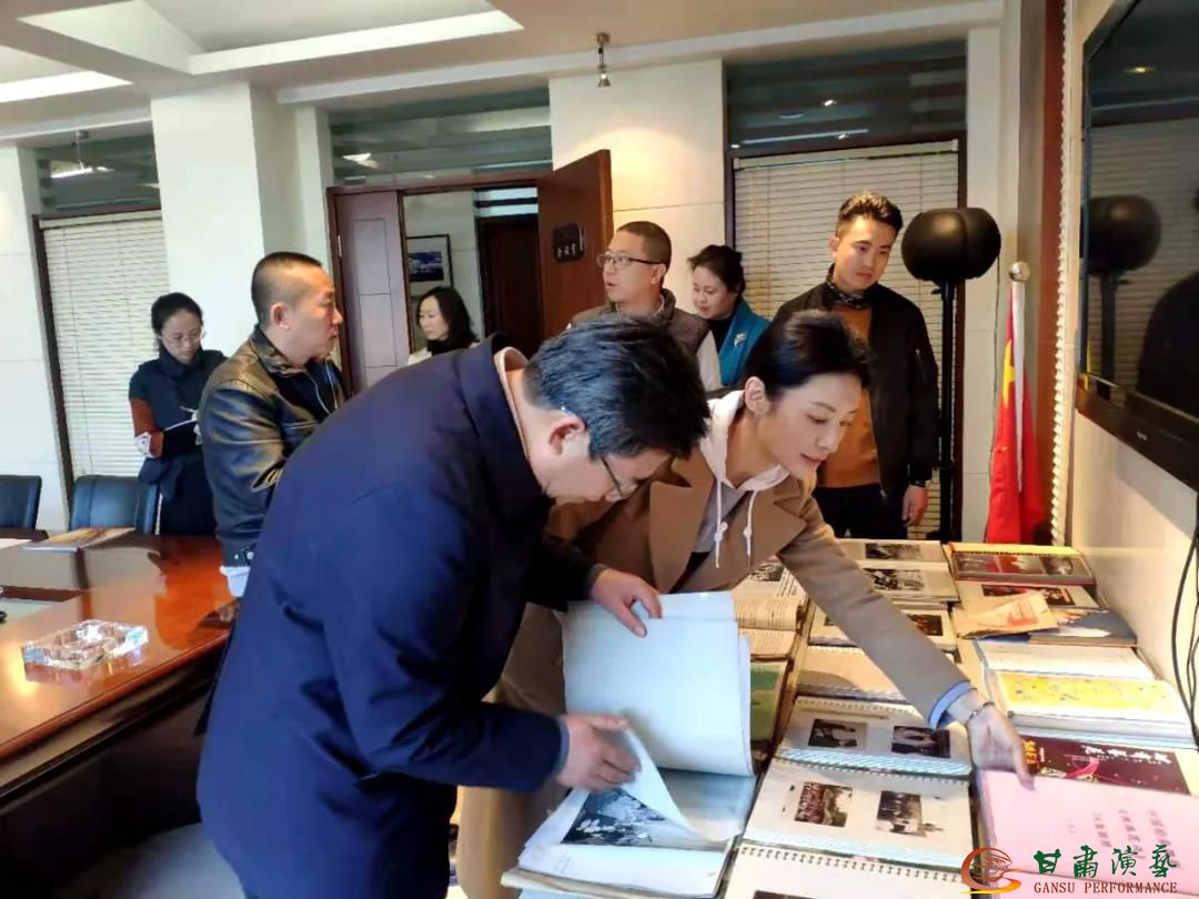 最后,大家來到會議室翻閱《絲路花雨》四十一年來的珍貴資料,通過以往演出報道、賀電、照片、音視頻資料等進一步了解該劇的艱難創(chuàng)作歷程、歷次修排過程和全球外交演出足跡,同時就今后《絲》劇在修排、舞美、服裝設(shè)計等方面進一步提升和市場化運營上進行深入細致的交流。