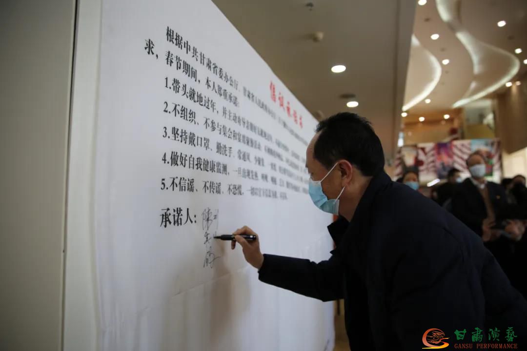 根據中共甘肅省委辦公廳、甘肅省人民政府辦公廳《關于做好人民群眾就地過年服務保障工作的通知》(甘辦發(fā)電〔2021〕19號)要求,在甘肅演藝集團黨委書記、董事長陳其銀及集團領導班子成員的帶領下,所有參加活動的黨員及入黨積極分子簽訂帶頭就地過年倡議承諾書。