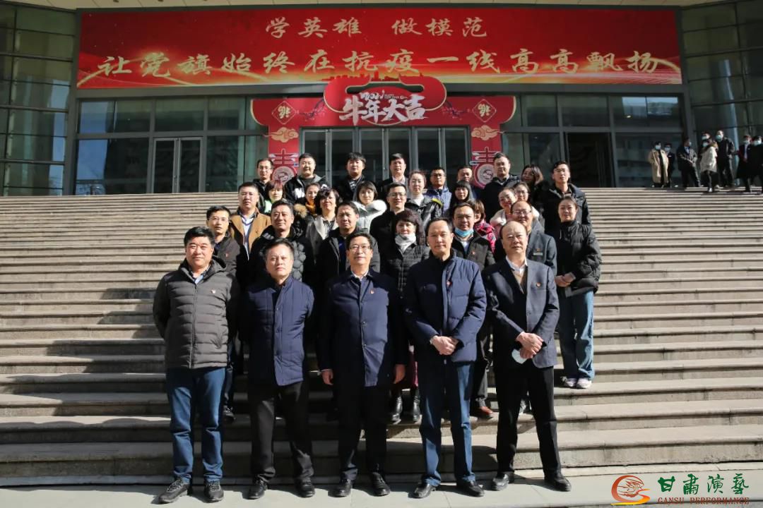 為深入學習貫徹習近平總書記在全國抗擊新冠肺炎疫情表彰大會上的重要講話精神,積極開展“學習身邊榜樣”活動,大力弘揚抗疫精神。由甘肅演藝集團機關黨支部牽頭于2021年2月2日下午在黃河劇院開展了“學英雄·做模范—讓黨旗始終在抗疫一線高高飄揚”主題黨日活動。主題黨日活動由機關黨支部副書記胡慶昭主持,集團機關黨支部、敦煌藝術團黨總支、話劇院黨總支、秦腔藝術劇院黨總支、演出公司黨支部、舞美中心黨支部共100余人參加。