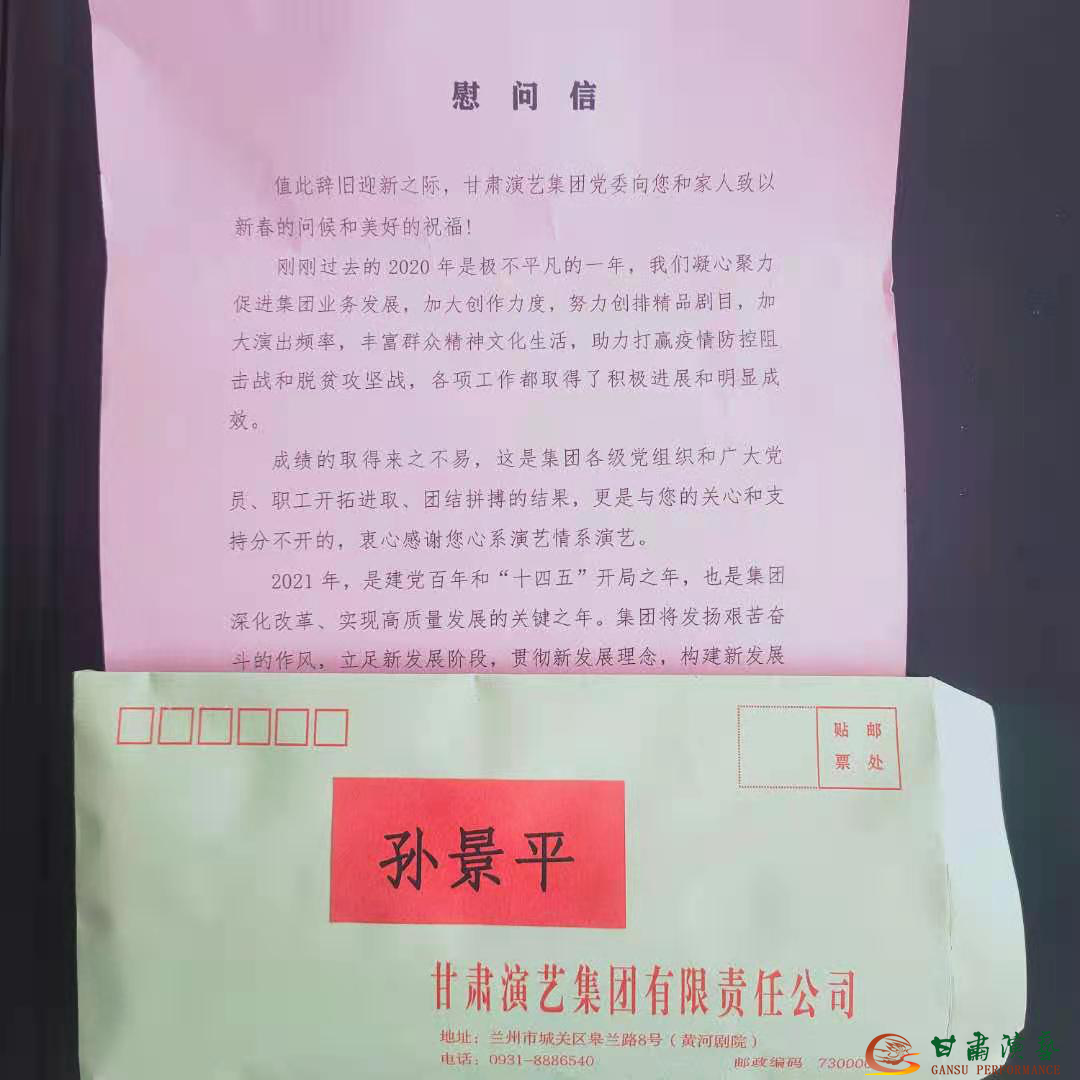 甘肅演藝集團(tuán)話(huà)劇院(甘肅兒童劇院)離退休老黨員、老干部、老藝術(shù)家、特困老同志們對(duì)甘肅演藝集團(tuán)黨委和各級(jí)領(lǐng)導(dǎo)的關(guān)心、關(guān)愛(ài)、關(guān)懷表示了由衷的感謝,更表達(dá)了對(duì)甘肅演藝事業(yè)蒸蒸日上的祝愿,同時(shí),也向甘肅演藝集團(tuán)黨委、領(lǐng)導(dǎo)和所有文藝界的同仁們送上新年的祝福。