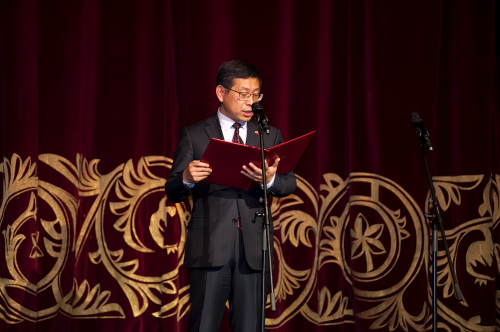 田二龍大使在致辭中向各界人士致以新春祝福并表示,中亞雙方聯(lián)合舉辦“歡樂春節(jié)”文藝演出,共同慶祝兩國建交25周年,在新年之初唱響了中亞友好的主旋律。25年前,中亞兩國正式建立外交關(guān)系開啟了兩國友好合作歷史的新篇章。建交以來,雙邊關(guān)系健康穩(wěn)定發(fā)展,政治互信增強、經(jīng)貿(mào)合作深化、人文交流密切,兩國成為相互信任的好朋友和真誠合作的好伙伴。當(dāng)前,兩國關(guān)系進入快速發(fā)展的新階段。相信在雙方共同努力下,中亞關(guān)系將繼往開來,蓬勃發(fā)展,取得更多的實際成果,造福于兩國人民?! ?