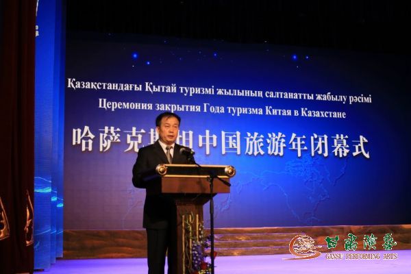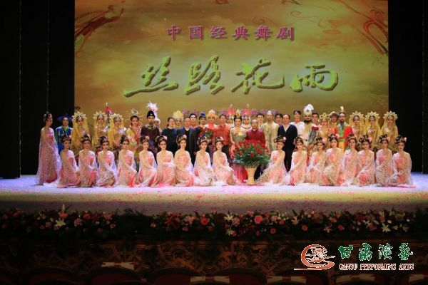 2017年11月17日晚,哈薩克斯坦首都阿斯塔納“和平和諧宮”華燈璀璨,歡聲雷動,座無虛席。為慶祝2017哈薩克斯坦“中國旅游年”活動圓滿閉幕,甘肅省歌舞劇院受中國國家旅游局邀請,在新疆吐魯番歡樂盛典文化旅游發(fā)展有限公司大力支持下,中國經(jīng)典舞劇《絲路花雨》劇組一行80人,赴“一帶一路”國家戰(zhàn)略沿線要地——友好鄰邦哈薩克斯坦,為中哈兩國政府官員、相關(guān)企業(yè)代表及對華友好人士等千余名觀眾獻(xiàn)上了一場精彩絕倫的演出,在哈薩克斯坦引起了不小轟動,中國國家旅游局副局長杜江、哈文化體育部副部長科扎加帕諾夫、中國駐哈大使張漢暉出席活動并致辭。這是舞劇《絲路花雨》繼今年元月份赴亞美尼亞、白俄羅斯參加 “歡樂春節(jié)”演出之后的又一重大對外文化交流演出,再次為祖國爭得了榮譽(yù)。