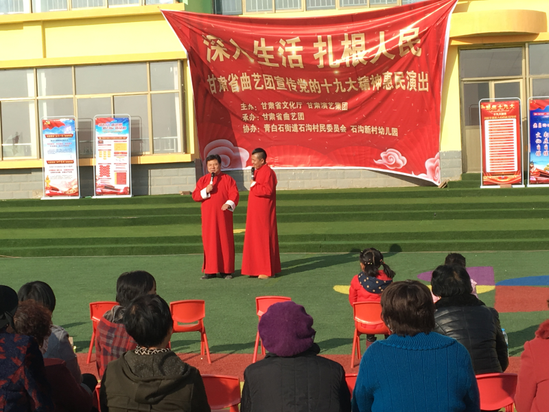為了更好的落實學習宣傳中國共產黨第十九次全國代表大會精神的工作,甘肅省曲藝團于12月2日、3日前往青白石石溝新村開展“深入生活、扎根人民”學習宣傳黨的十九大惠民演出活動。