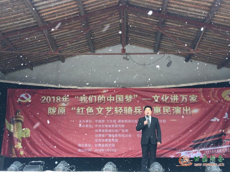 2018年1月24日早上七點(diǎn),甘肅省曲藝團(tuán)一眾演職人員披星戴月,頂著嚴(yán)寒與風(fēng)雪前往定西市安定區(qū)新集鄉(xiāng)開展惠民演出活動(dòng)。