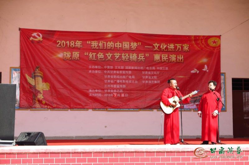 為了在春節(jié)期間將最精彩的節(jié)目、最真誠(chéng)的問(wèn)候繼續(xù)送到各地父老鄉(xiāng)親們的身邊,甘肅省曲藝團(tuán)2018年“我們的中國(guó)夢(mèng)”——文化進(jìn)萬(wàn)家暨隴原“紅色文藝輕騎兵”惠民演出任務(wù)于正月初十繼續(xù)進(jìn)行,本次演出在榆中縣三角城鄉(xiāng)高墩營(yíng)村開演。