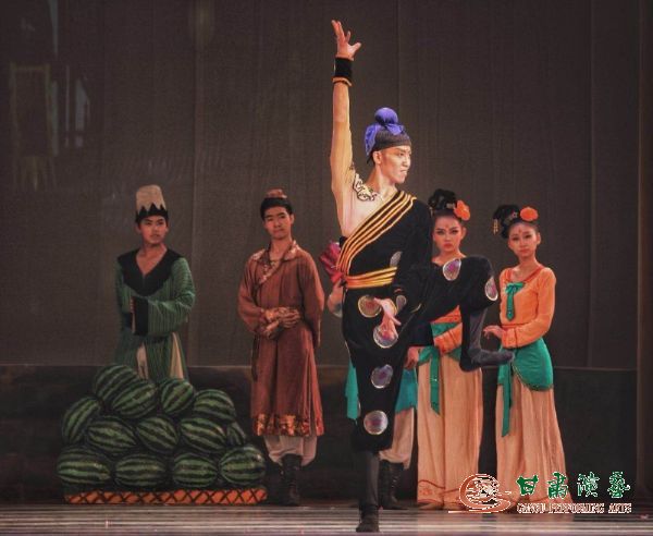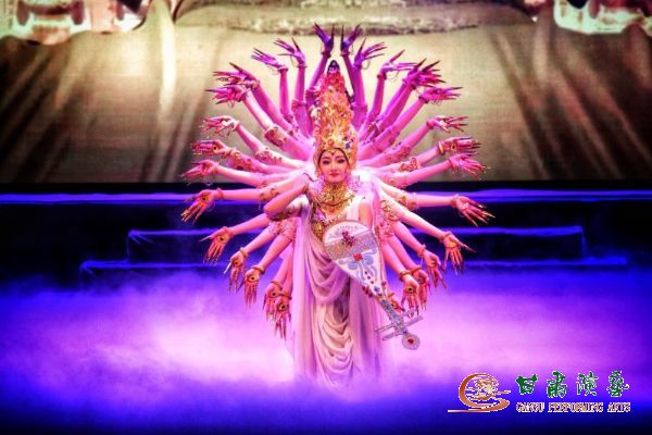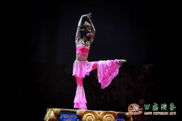 在領(lǐng)導(dǎo)致辭和互換禮物環(huán)節(jié)之后,輕靈的樂聲緩緩響起,大幕徐徐拉開,演員們用唯美的肢體語言,為觀眾撥開千年時(shí)空迷霧,現(xiàn)場(chǎng)頓時(shí)響起熱烈的掌聲,被獨(dú)特的開場(chǎng)序幕《金光千佛》所震撼。在整個(gè)演出過程中,曲折動(dòng)人的故事情節(jié),伴隨著優(yōu)美的音樂旋律和美輪美奐、變幻多姿的舞臺(tái)布景,一次次將現(xiàn)場(chǎng)氣氛推向高潮,歡呼聲和贊嘆聲此起彼伏、不絕于耳,兩所大學(xué)共計(jì)四千五百多名師生觀看演出。