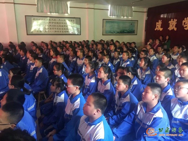 一曲經(jīng)典的紅色歌曲《紅旗飄飄》拉開了演出的序幕?,F(xiàn)場,歌聲飛揚、舞姿翩翩。師生們聚精會神的觀看演出,不時報以熱烈的掌聲。隨后的相聲更是讓學生和老師們笑得合不攏嘴,其中吉他相聲的一曲《同桌的你》更是引起了師生們的共鳴,幾百名師生一起合唱的場面非常壯觀。一直到演出結束張掖市第一中學的全體師生都沉浸在演出之中,一同享受了這場曲藝盛宴。(圖文由甘肅省曲藝團提供)
