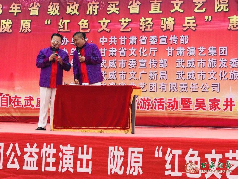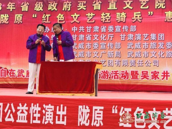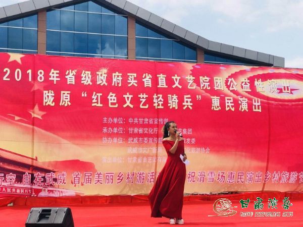 2018年,由中共甘肅省委宣傳部主辦,甘肅省文化廳、甘肅演藝集團(tuán)承辦,中共武威市委宣傳部、武威市旅發(fā)委、武威市文廣新局、武威市文化旅游協(xié)會(huì)協(xié)辦,甘肅省曲藝團(tuán)赴武威市涼州區(qū)、天??h隴原“紅色文藝輕騎兵”公益性惠民巡演出,正在魏巍祁連山下、茫茫戈壁草原上火熱進(jìn)行中。